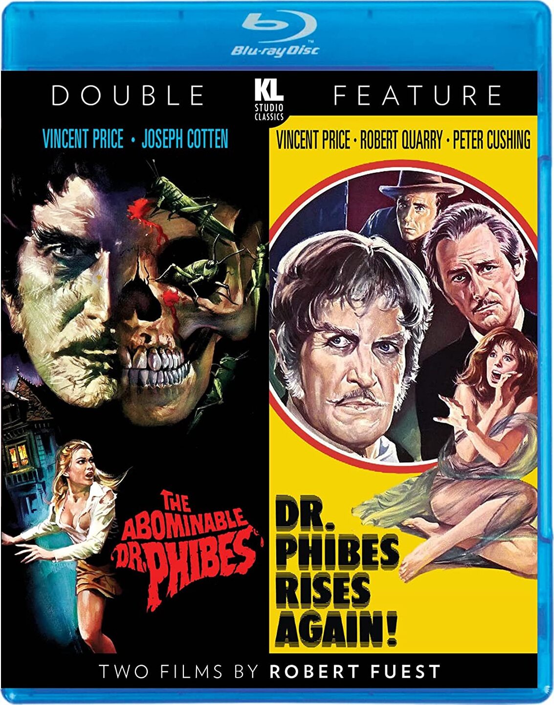 THE ABOMINABLE DR. PHIBES (1971) Meet Doctor Phibes: a one-time concert musician who’s now an all-time crazed murderer. In this clever, crypt-kicking classic, horrormeister Vincent Price (The Raven, The Last Man on Earth) plays a diabolical doc seeking the ultimate in revenge with precision creepiness and surgical wit. Watch Dr. Phibes live up to his promise: “Nine killed her, nine shall die, nine eternies in doom!” After a team of surgeons botch his beloved wife’s surgery, leaving her for dead, the emotionally distraught Dr. Phibes creatively concocts a fatal prescription for revenge. Using the Good Book as his guide, Phibes unleashes a score of old testament atrocities—from a plague of locusts to an attack of rats—on his enemies that climax in what may be one of the eeriest endings on screen record! Robert Fuest (And Soon the Darkness) directed this darkly comic shocker that features Joseph Cotten (Baron Blood), Hugh Griffith (So Evil My Love), Terry-Thomas (The Green Man) and Virginia North (On Her Majesty’s Secret Service) as the doc’s evil assistant Vulnavia. DR. PHIBES RISES AGAIN (1972) Flesh Crawls! Blood Curdles! Phibes Lives! This sequel to The Abominable Dr. Phibes again features Vincent Price (Scream and Scream Again, House of the Long Shadows) as one of his most perfect horror villains in his long list of evil-doers. The eminent Dr. Phibes awakens from a decade of suspended animation and heads to Egypt with his mute aide-de-camp Vulnavia and the corpse of his dead wife. To resurrect his spouse, Phibes gets up to his usual, diabolical tricks: cleverly murdering people in strange and heinous ways to invoke a magical incantation. But once he is in the tomb of the dead Pharaohs, the good doctor discovers that his pursuit of an afterlife may be foiled by his nemesis who wants to end the reign of this sadistic surgeon of gore. Robert Fuest (The Devil’s Rain) directed this spine-tingling romp that features Robert Quarry (Madhouse), Peter Jeffrey (Ring of Bright Water), Fiona Lewis (Tintorera) and Hugh Griffith (Cry of the Banshee), with guest stars Peter Cushing (The Skull), Beryl Reid (The Killing of Sister George) and Terry-Thomas (Danger: Diabolik).