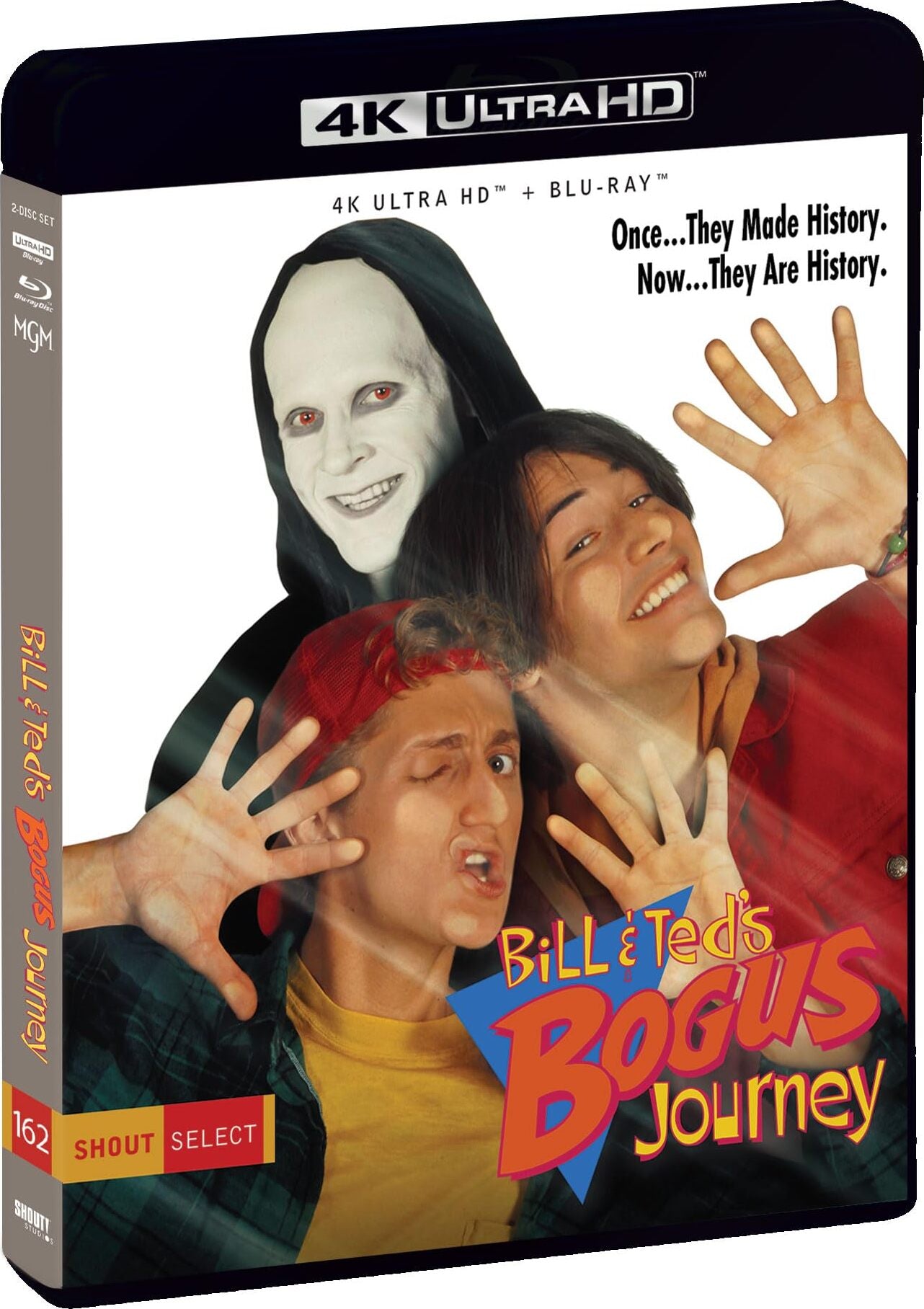 In Bill & Ted's Bogus Journey, the titular time travelers aren't making history — they are history! When an evil-doer from the future sends eviler robot twins of Bill & Ted to assassinate and replace good, non-robot Bill & Ted, the guys wind up face to face with the Grim Reaper (William Sadler)! Can the now-dead duo escape, defeat their evil doppelgangers, and win their Battle of the Bands contest?
