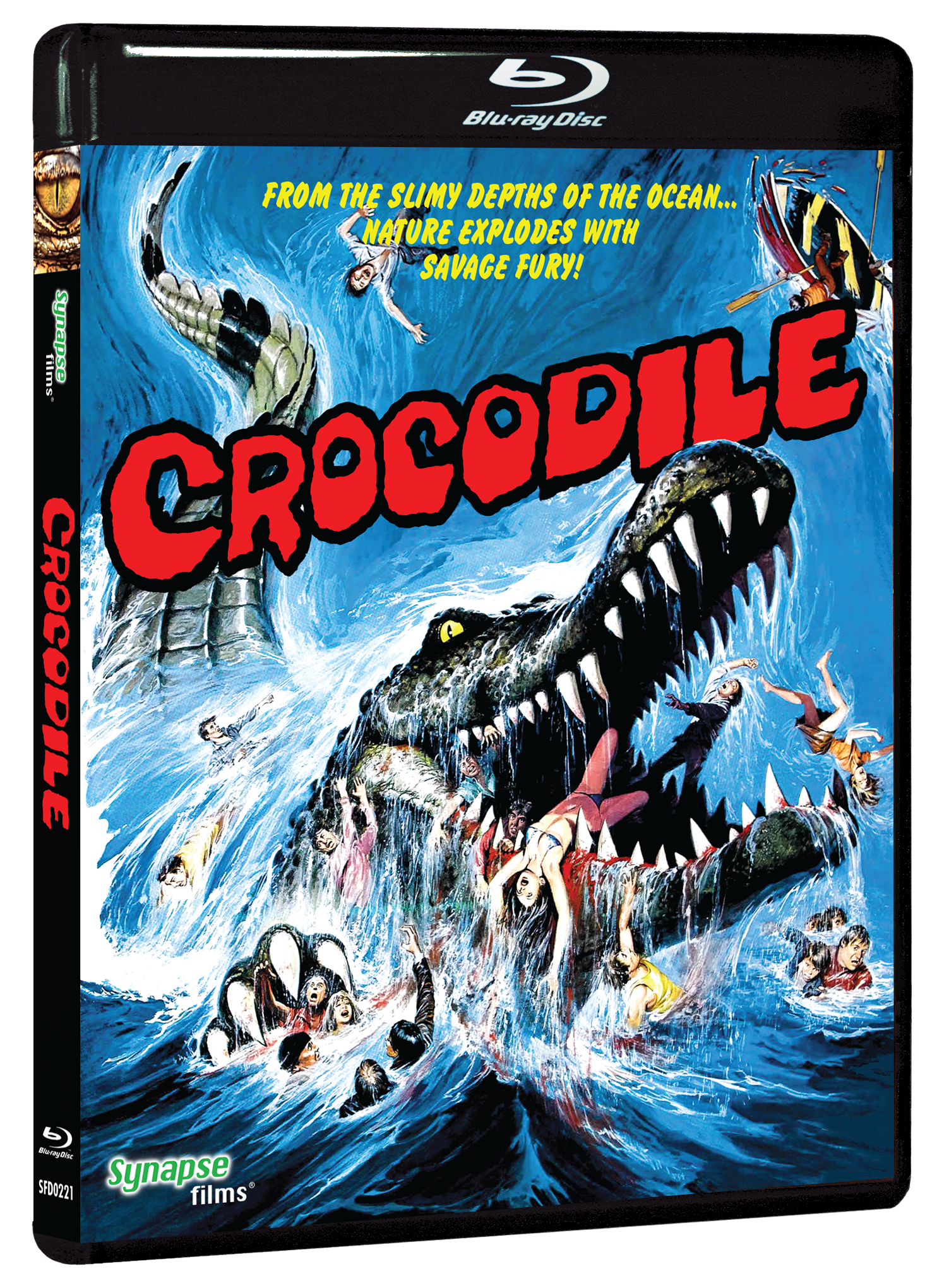 This killer croc classic, originally filmed in 1978 as Crocodile Fangs (Agowa gongpo), was released in slightly different versions all around the world during its theatrical run. Synapse Films is proud to present the Blu-ray world-premiere of Crocodile in its original U.S. release version, meticulously restored from the original English 35mm camera negative.