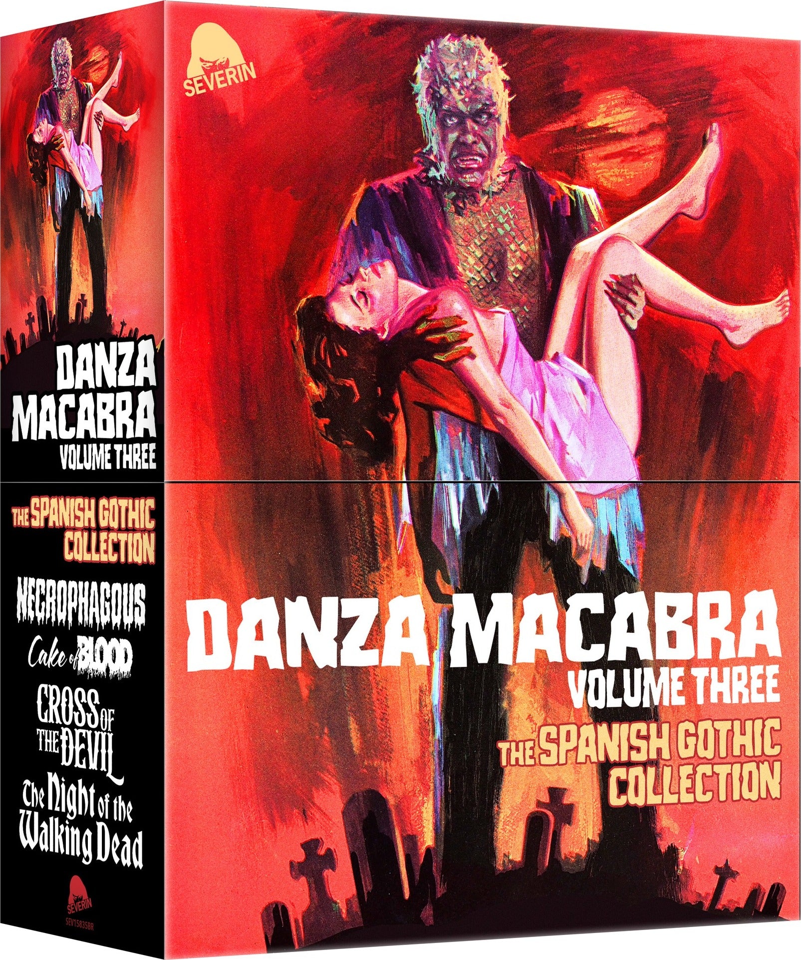 Spain’s tradition of Gothic Horror – particularly during the Franco dictatorship – was characterized by daring concepts, lush visuals, extreme sexuality and a startling aesthetic all its own. These four classic shockers from the 1970s represent the genre at its most audacious: In NECROPHAGOUS, the debut feature by writer/director Miguel Madrid, a fractured family in a crumbling castle conceals a grisly graveyard secret. The anthology film CAKE OF BLOOD – never previously available outside of Spain – presents a quartet of supernatural tales by four young filmmakers. Hammer Films director John Gilling brings his inimitable style to the occult thriller in CROSS OF THE DEVIL. And a terminally ill woman is enticed by eternal life in León Klimovsky’s vampire masterwork, THE NIGHT OF THE WALKING DEAD. Each film in this collection has been scanned from its original negative – with over 8 hours of Special Features – for the first time ever in America.