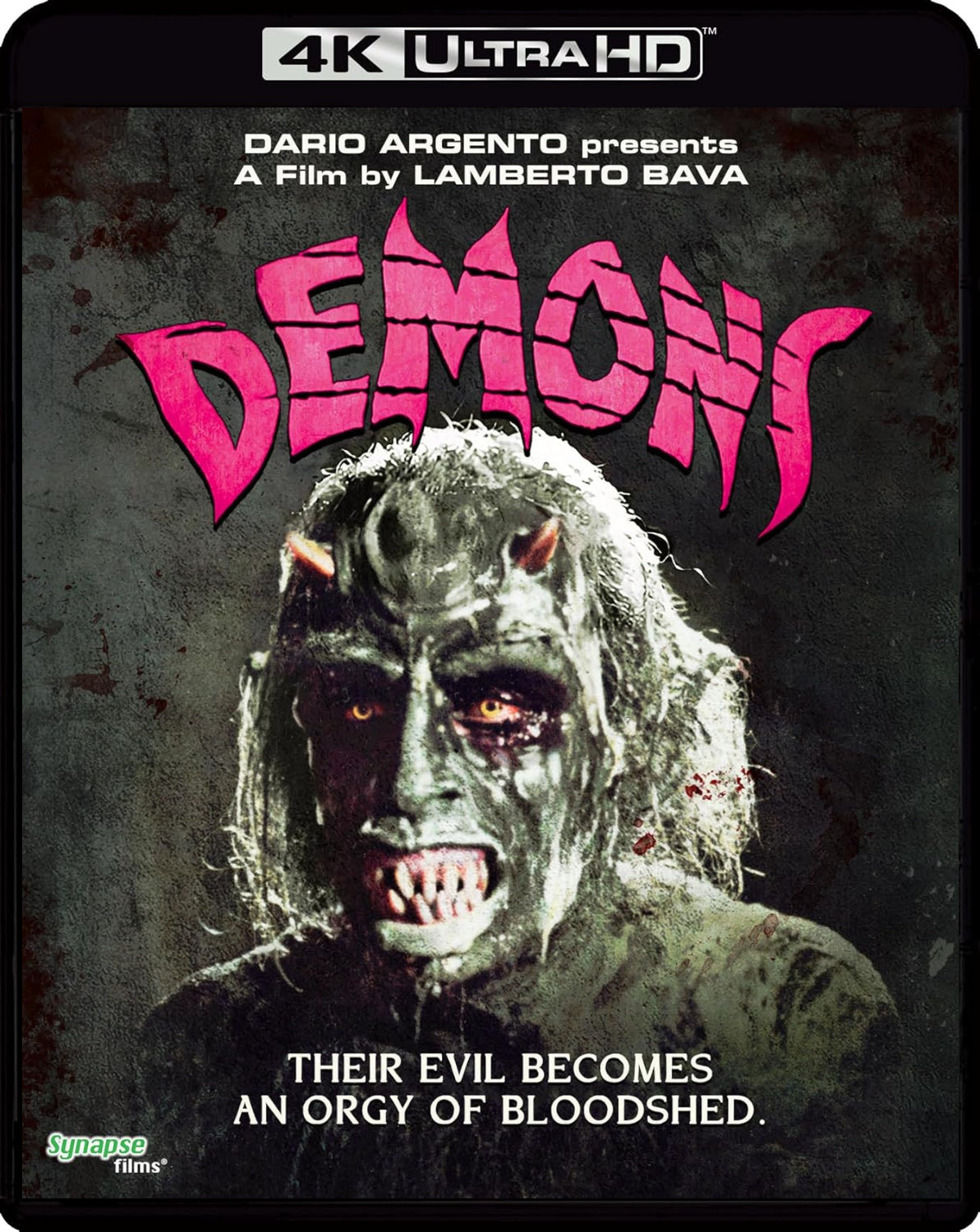 A masked man offers tickets to a horror movie sneak preview at the mysterious Metropol cinema. When a patron is scratched by a prop displayed in the theatre lobby, she transforms into a flesh-ripping demon! One by one, the audience members mutate into horrible creatures hell-bent on destroying the world! Can anyone escape this gory orgy of terror? Regarded by horror fans the world over as one of the greatest Italian splatter films ever made, Lamberto Bava’s Demons is not only major cinematic nightmare fuel, but also a hugely entertaining gore-fest of the highest order. Produced by Dario Argento (Suspiria, Tenebrae, Phenomena), Demons features an amazing soundtrack of 80’s rock/heavy metal music by Billy Idol, Scorpions, Mötley Crüe, Accept, Saxon and MORE!