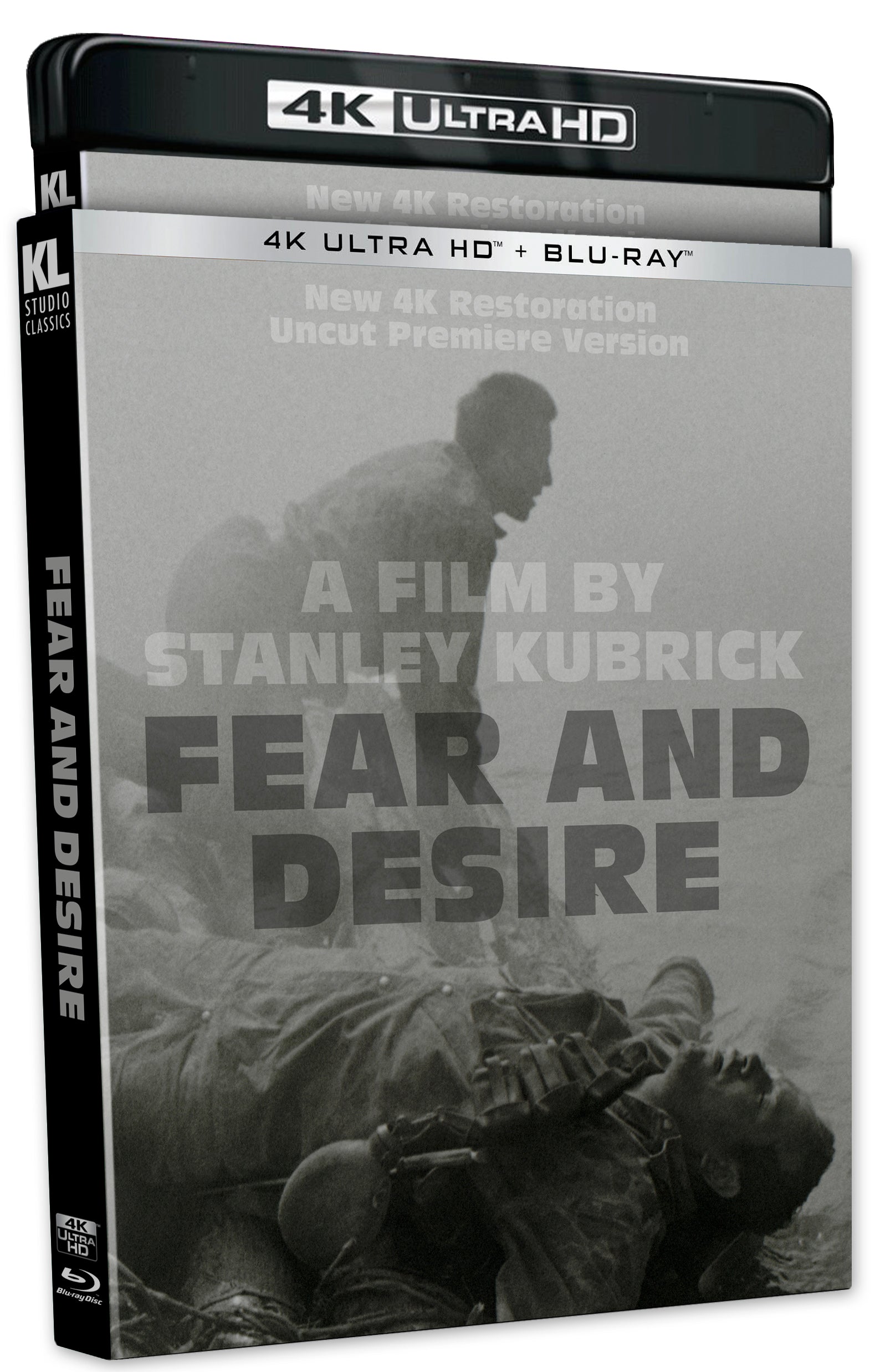 Fear and Desire is the ambitious first feature film by legendary filmmaker Stanley Kubrick (Paths of Glory, Full Metal Jacket). In this existential drama—which has the feeling of a waking dream rather than a conventional war film—four soldiers return to their senses after crash-landing in a forest behind enemy lines. Blindly navigating their way back to their unit, they attack an isolated cabin occupied by enemy soldiers, then apprehend a peasant woman who is tormented by the deranged young soldier assigned to guard her. On the verge of freedom, they discover an outpost of enemy officers, and must decide whether to slip silently past or stage a violent confrontation with their doppelgängers. Upon its initial release, Kubrick was stung by negative audience reactions and immediately decided to tone down the philosophical aspects of the film. These edits made the film less of a metaphysical experience and more of a conventional war film. For decades, this 62-minute version was all that existed of Fear and Desire, until the Library of Congress came into possession of a 35mm element of the original 70-minute premiere cut, which has not been seen since its interrupted theatrical run in 1953. Now, we can finally see Fear and Desire as it was first released, and witness the blossoming of a 23-year-old cinematic genius.