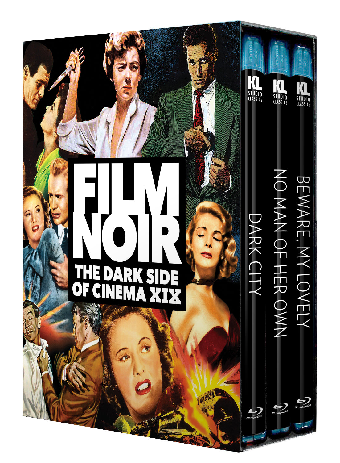 This collection features three mood-drenched classics of noir. DARK CITY (1950) – A Tense, Tough Drama of Underworld Violence and Revenge! After losing his company’s $5,000 cashier’s check in a crooked card game, a stranger in Chicago commits suicide. The other gamblers—including Danny Haley, played by steely screen legend Charlton Heston (Touch of Evil) in his Hollywood debut—worry about the dangers of cashing the check, but this soon becomes the least of their concerns when the head of the group is found hanged. Police Captain Garvey (Dean Jagger, Pursued) concludes the hanging to be a case of homicide and discovers that the stranger had a mentally deranged brother (Mike Mazurki, Murder, My Sweet) who is out for vengeance. Fran (Lizabeth Scott, Pitfall), a torch singer who is desperately in love with Danny, begs him to run away with her before it’s too late. This stunningly cynical morality tale also features the stars of TV’s Dragnet 1967, Jack Webb and Harry Morgan, as Danny’s gambling partners. Directed by the dynamic Willam Dieterle (Portrait of Jennie, Rope of Sand) and bathed in black-and-white by cinematographer Victor Milner (The General Died at Dawn). NO MAN OF HER OWN (1950) – Every Door Closed Against Her…A Woman Faces the Age-Old Problem of Her Sex! The incandescent Barbara Stanwyck (Double Indemnity, The Strange Love of Martha Ivers) shines as a woman torn between a comfortable lie and the painful truth in this heart-wrenching noir classic. Helen Ferguson (Stanwyck), penniless, pregnant and dumped by her slimy boyfriend Steve (Lyle Bettger, Union Station), assumes the identity of a pregnant woman who was killed in a train crash. Eventually Helen’s sordid past catches up to her when Steve arrives demanding money to keep her true identity a secret from the man who loves her (John Lund, Night Has a Thousand Eyes). Gorgeously shot by cinematographer Daniel L. Fapp (The Big Clock, The Great Escape) and directed by Hollywood ace Mitchell Leisen (Death Takes a Holiday, Murder at the Vanities), this pitch-black masterpiece of harrowing melodrama was adapted from the book I Married a Dead Man by crime-writing king Cornell Woolrich (The Chase, Rear Window). BEWARE, MY LOVELY (1952) – Trapped by a Man Beyond Control! Screen heavyweights Ida Lupino (Woman in Hiding) and Robert Ryan (Odds Against Tomorrow) square off in this stylish and atmospheric thriller. Wealthy widow Helen Gordon (Lupino) hires drifter Howard Wilton (Ryan) as a handyman to do chores around her rambling mansion. What she doesn’t know: Howard Wilton is insane. Insecure and paranoid, Wilton thinks everyone, including Helen, is against him. He suffers from memory lapses and extreme mood swings. She’s soon a prisoner in her own home after Wilton locks the doors and tears out the telephone. His mood swings from violence to complacency but after Helen gets a message to the police via a telephone repairman, she finds he is still in the house. Beware, My Lovely is a spine-chilling suspense story shot by cinematographer George E. Diskant (On Dangerous Ground), written by noir specialist Mel Dinelli (The Spiral Staircase, House by the River) and helmed by noted art director Harry Horner (The Heiress, The Hustler).