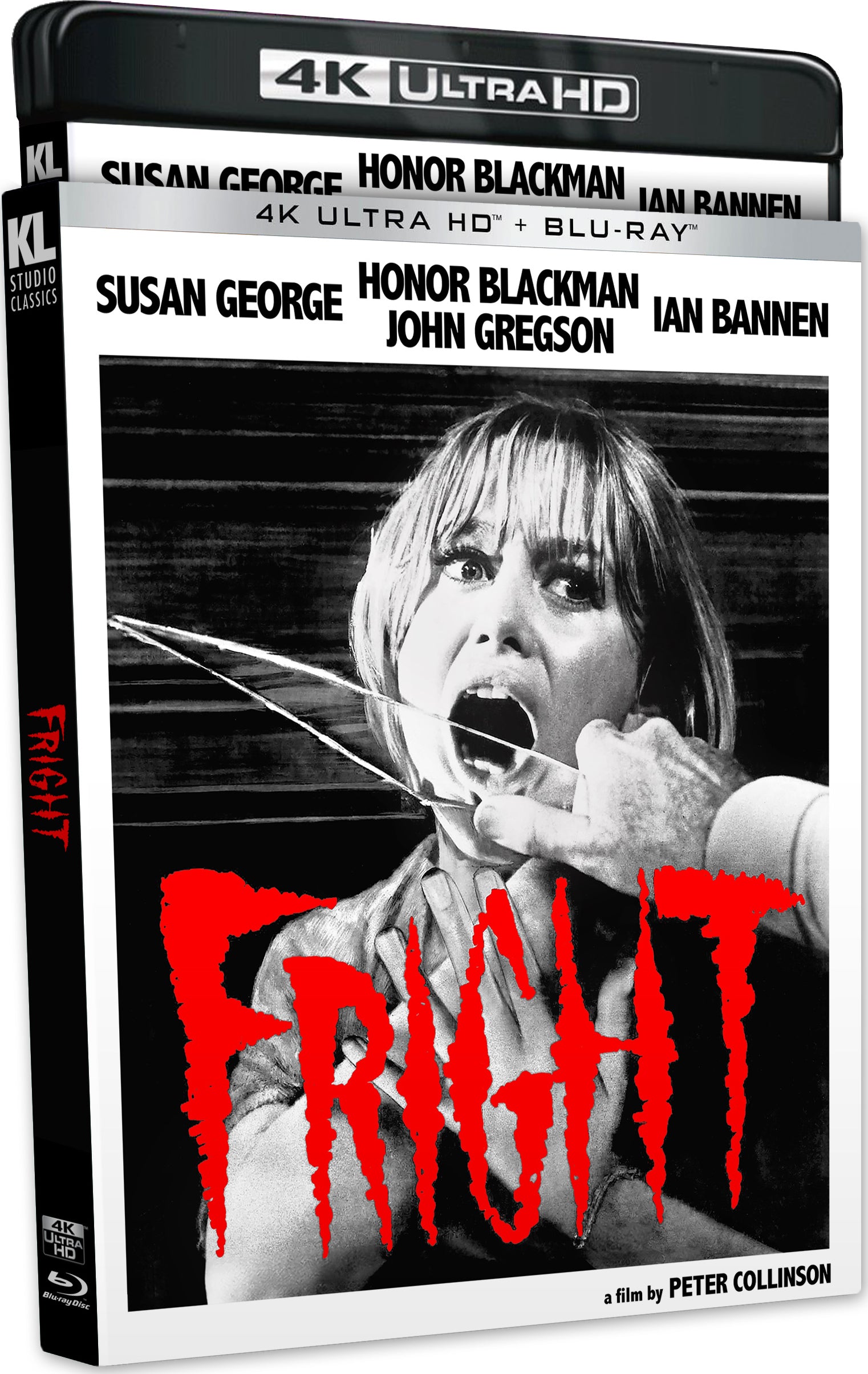In this shining early example of what would notoriously become known as the “slasher movie,” teenage babysitter Amanda (screen goddess Susan George, Sudden Terror, Straw Dogs) arrives at the Lloyd home to watch their young son one fateful evening. It seems that the strangely nervous Mrs. Lloyd is hiding a secret—a killer secret that has just escaped from a nearby insane asylum and is now desperately trying to get inside the house! What must Amanda endure to survive the ultimate night of Fright? Directed by cult British maverick Peter Collinson (The Italian Job, The Penthouse) and written by Tudor Gates (The Vampire Lovers), Fright is a midnight-movie classic, an exercise in sheer savage peril and pure unhinged terror! Also starring Ian Bannen (Doomwatch) and the bewitching Honor Blackman (Goldfinger, Moment to Moment).
