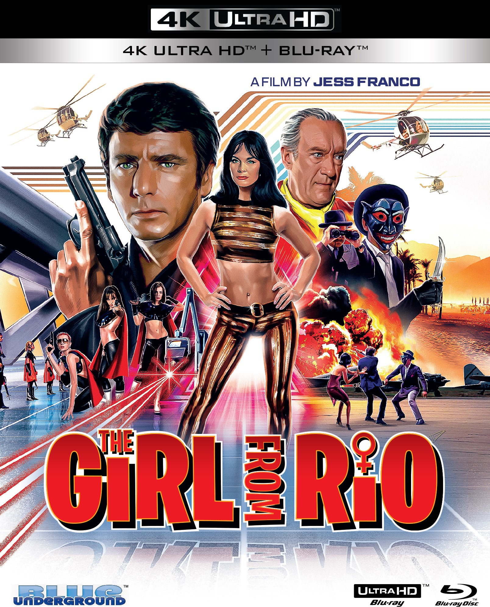 In the tradition of BARBARELLA and DANGER: DIABOLIK comes this swinging ‘60s action orgy as bisexual super-villain Sumuru (the luscious Shirley Eaton of GOLDFINGER) launches a diabolical plan to enslave the male species with her army of lusty warrior women. But when Sumuru kidnaps a fugitive American playboy, she crosses a sadistic crime boss the sexes that will bring Brazil to its knees in more ways than one. Richard Wyler (THE BOUNTY KILLER) and Maria Rohm (EUGENIE) co-star in this kinky cult favorite from producer Harry Alan Towers (THE BLOOD OF FU MANCHU) and director Jess Franco (VENUS IN FURS). Also known as RIO 70, FUTURE WOMEN and THE SEVEN SECRETS OF SUMURU, THE GIRL FROM RIO is now presented in a brand- new 4K restoration from the original camera negative, totally uncut and uncensored with all its eye-popping nudity, torture and lesbianism!