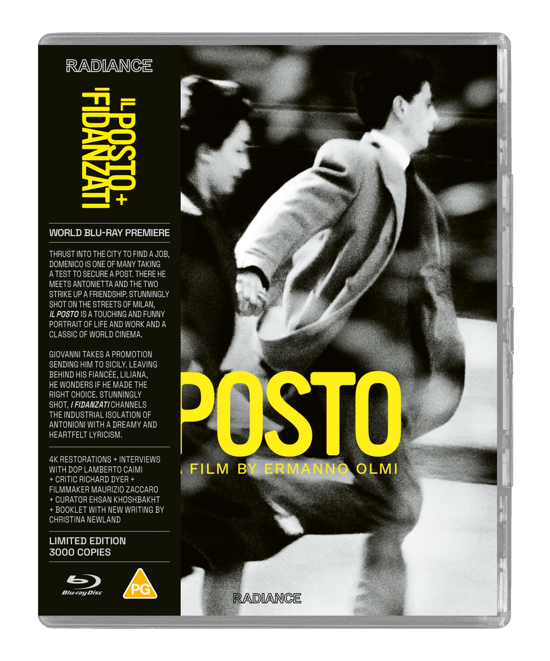 Domenico is thrust into the big city by his family to find a job for life. He’s up for an exam to secure a post along with many hopefuls. There he meets Antonietta (played by Olmi’s then wife Loredana Detto) and the two strike up a friendship and experience the world of work for the first time together. Stunningly shot on the streets of Milan, Ermanno Olmi’s (The Tree of Wooden Clogs) touching and often funny portrait of modern life and work won numerous awards on release and is recognised as a classic of world cinema.