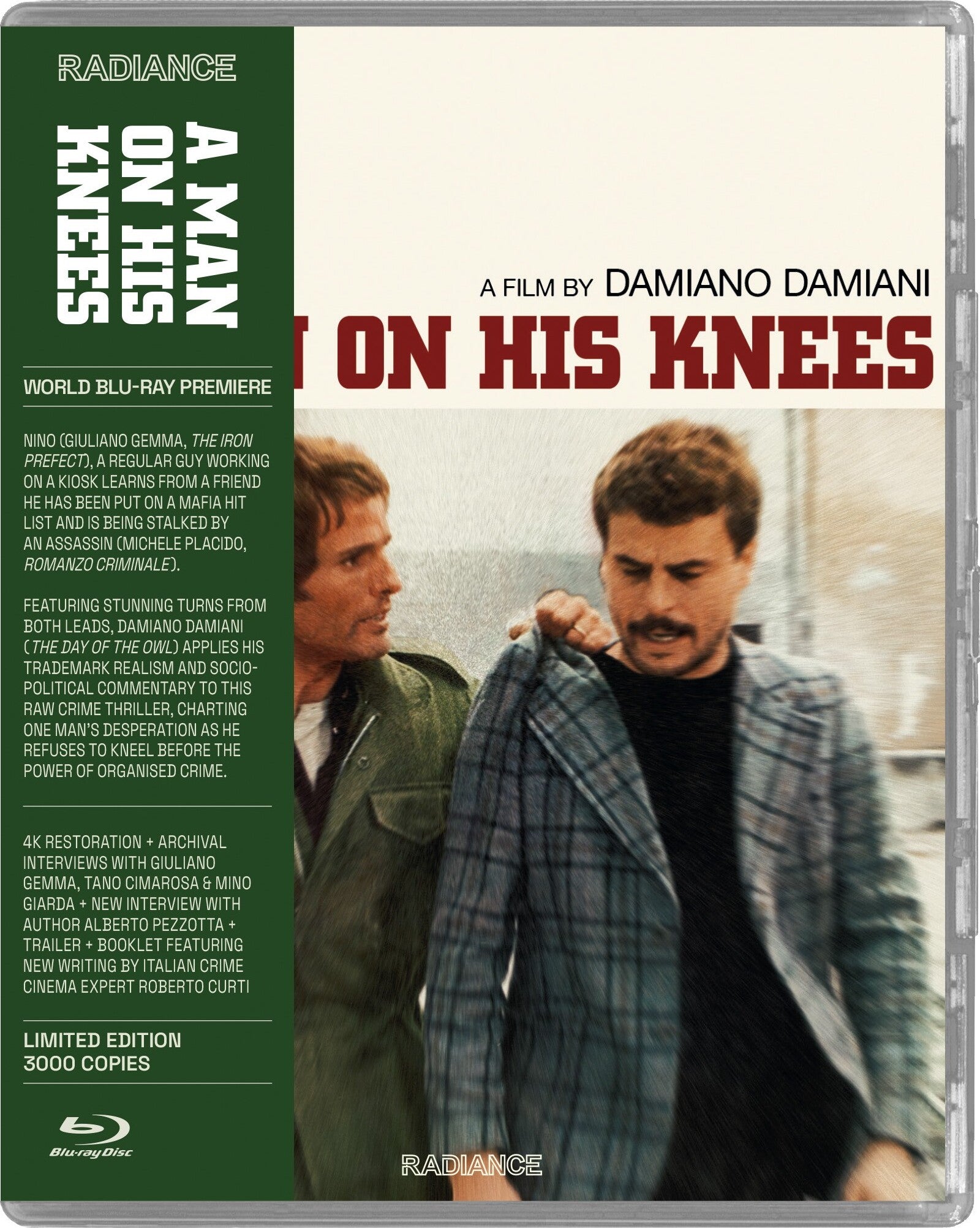 A man with a troubled past, Nino knows only too well what he faces and uses all his strength and cunning to keep himself and his family alive. Featuring stunning performances from both leads, Damiano Damiani (The Day of the Owl) applies his trademark realism and socio-political commentary to A Man on His Knees, charting Nino’s desperation as he refuses to kneel before the power of organised crime. Newly restored in 4K, Radiance Films is proud to present one of Damiani’s finest films on Blu-ray for the first time in the world.