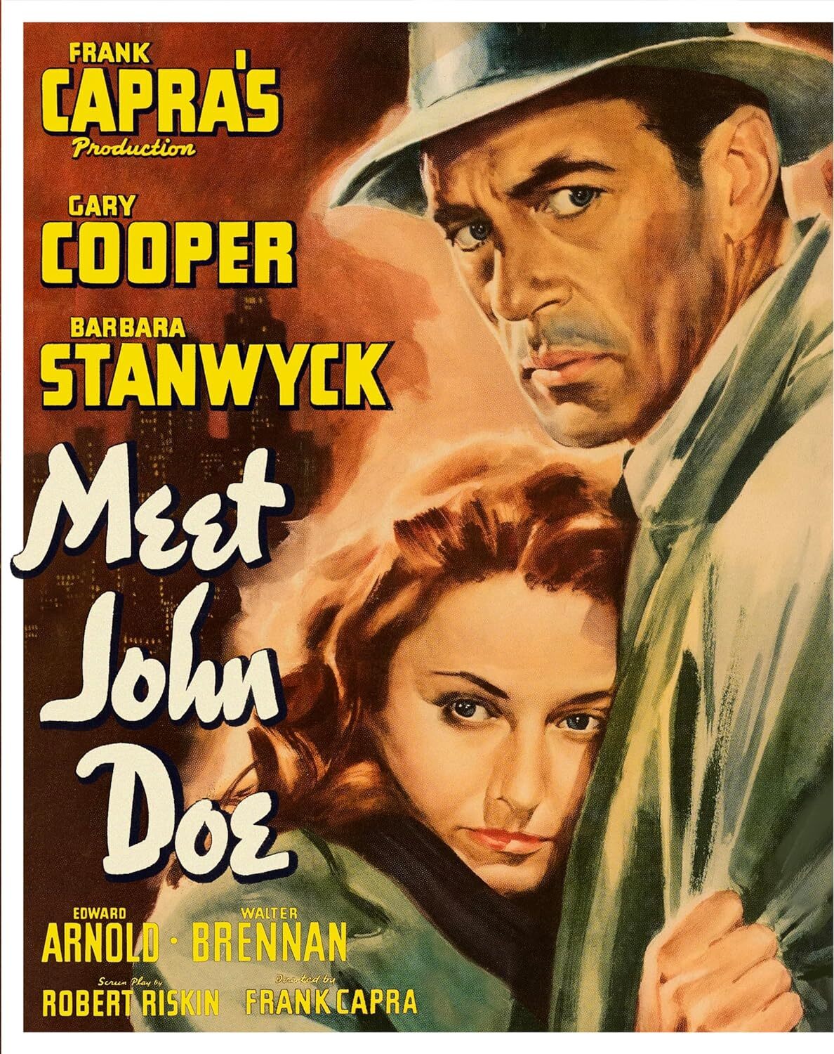 Based on Richard Connell’s 1922 short story "A Reputation", director Frank Capra chose Meet John Doe as the first release for his newly-formed Frank Capra Productions, which he established with longtime writer-collaborator Robert Riskin, who wrote the screenplay for Doe. A box office success, Doe would also garner an Academy Award nomination for Best Original Story (for Connell and Robert Presnell, Sr.).
