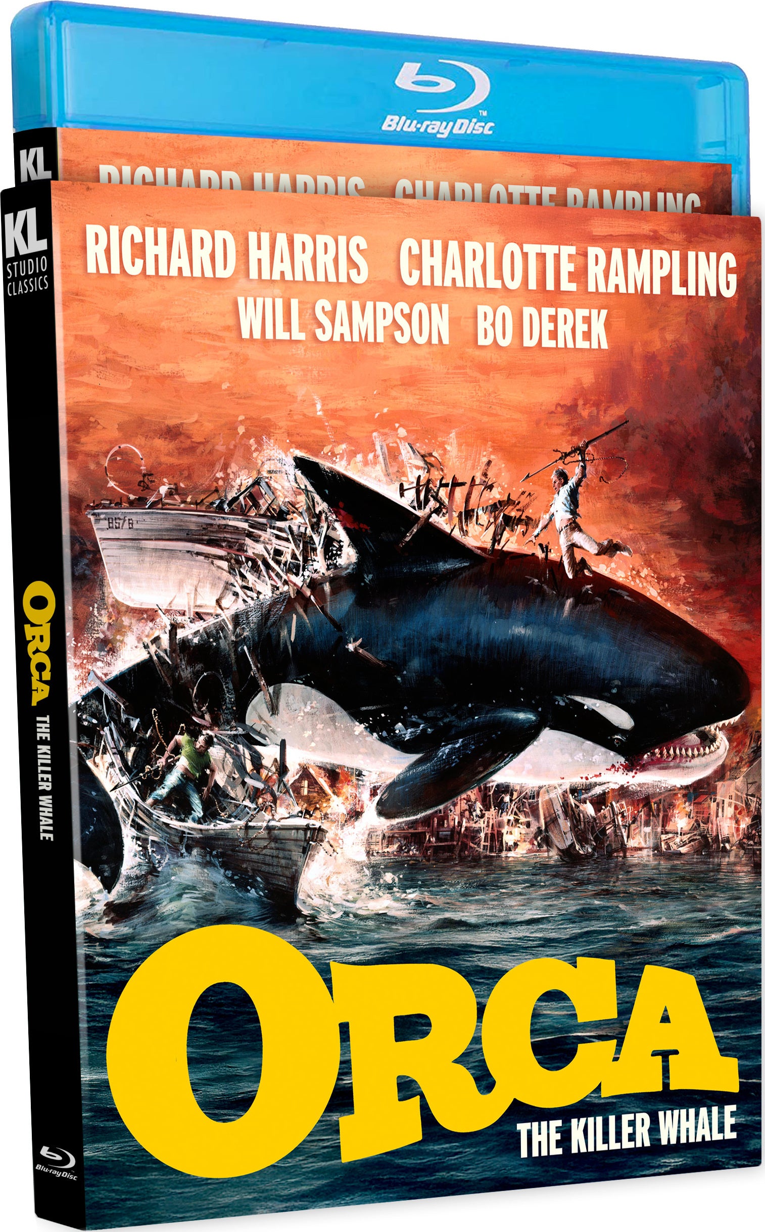 The killer whale is one of the most intelligent creatures in the universe. Incredibly, he is the only animal other than man who kills for revenge. Producer Dino De Laurentiis (Death Wish, King Kong) and director Michael Anderson (Logan’s Run) join forces to present the rousing action-adventure story of Orca: The Killer Whale. It’s the epic tale of one powerful being against another: a strong, determined fisherman named Captain Nolan (the mighty Richard Harris, Juggernaut) versus an equally determined whale. When the giant whale’s pregnant mate is maimed and killed by Nolan, in a twist on Moby Dick, the whale seeks vengeance on the man. Orca smashes boats, collapses buildings and even manages to cause enormous destruction by fire in this slick seafaring thriller brimming with nerve-jangling suspense and spectacular special effects! Featuring music by the maestro Ennio Morricone (The Good, the Bad and the Ugly) and co-starring screen icons Charlotte Rampling (Zardoz), Will Sampson (The White Buffalo) and Bo Derek (10) in her stunning movie debut.