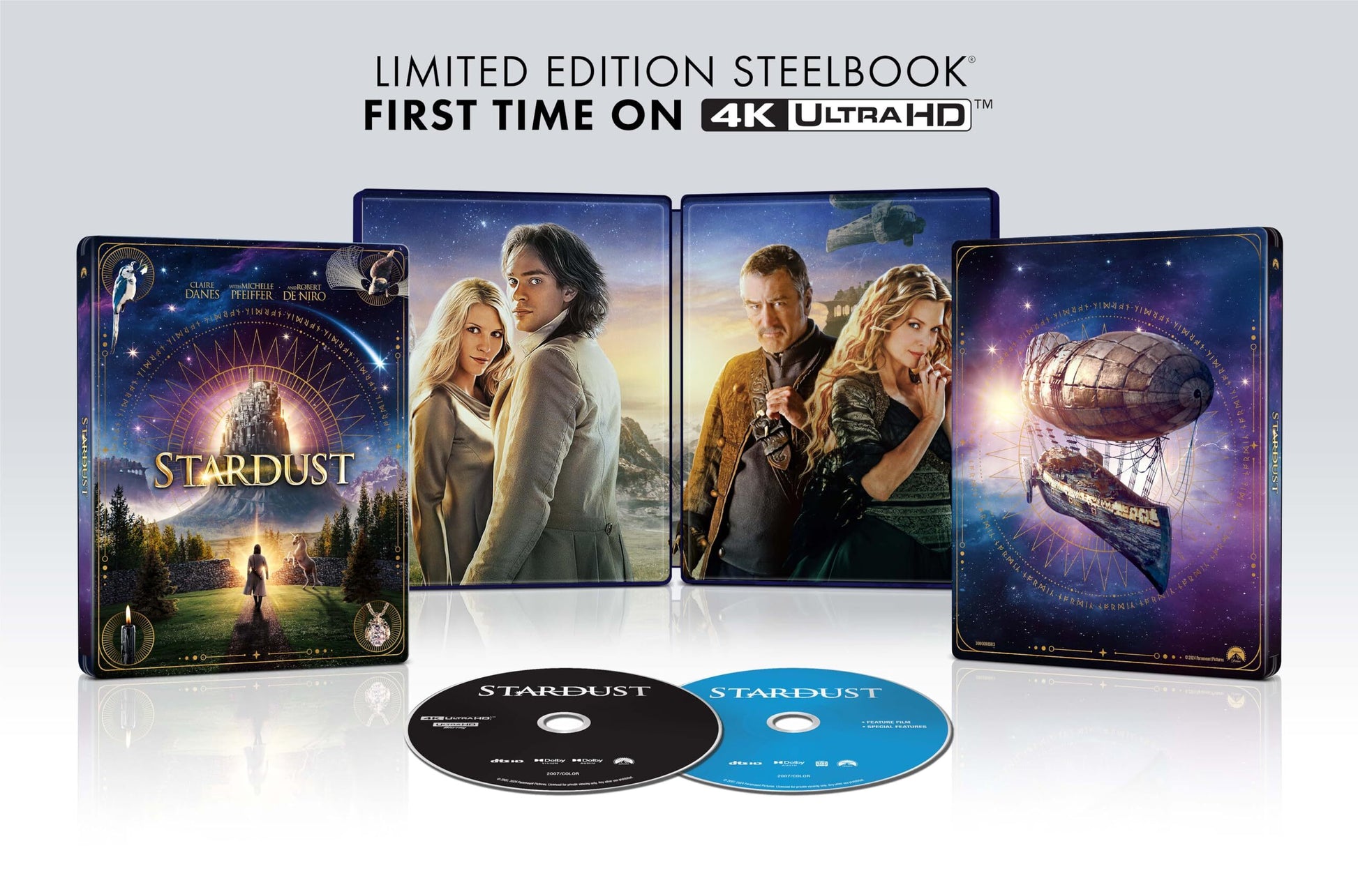For the first time ever on 4K Blu-ray, the spectacular adventure based on the book by Neil Gaiman (CORALINE) shines like never before. Tristan (Charlie Cox) hopes to woo a beautiful girl named Victoria (Sienna Miller) by bringing her a falling star. But the star is really a celestial beauty known as Yvaine (Claire Danes), with a witch named Lamia (Michelle Pfeiffer) simultaneously after Yvaine's youth. STARDUST is a fairytale like nothing you've ever seen, with a combination of romance, action, and humor that will have you believing in pure magic. The all-star cast features Robert De Niro, Peter O'Toole, Rupert Everett, Ricky Gervais, and Henry Cavill, with the voice talents of Ian McKellen as the Narrator.