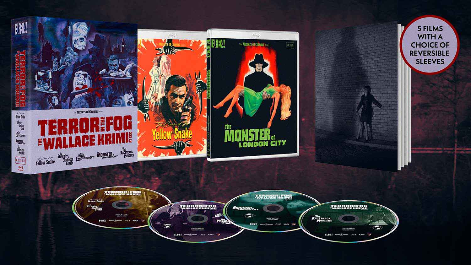 With its masked killers, labyrinthine plots and gothic atmosphere, the Wallace krimi blended crime, thriller and horror elements into a potent mix that had a significant influence on both the Italian giallo and the American slasher film. The Masters of Cinema series is proud to present five of Artur Brauner’s Wallace adaptations for the first time on Blu-ray in the UK from new restorations provided by CCC Film, alongside a wealth of special features – including a bonus film presented in standard definition, The Phantom of Soho.