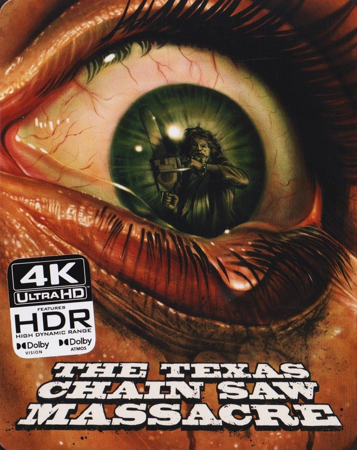 DISC ONE holds the 4K Blu-ray feature film and four commentary tracks: writer-producer-director Tobe Hooper, actor Gunnar Hansen and cinematographer Daniel Pearl; actors Marilyn Burns, Allen Danziger and Paul A. Partain with production designer Robert Burns; Tobe Hooper solo; and Daniel Pearl, editor J. Larry Carroll and sound recordist Ted Nicolaou.