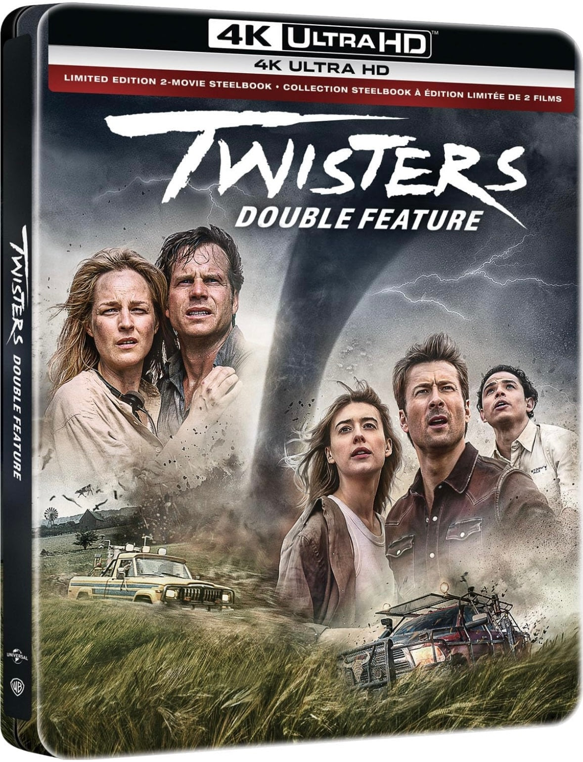 Get swept up in two adrenaline-pumping blockbuster disaster epics with the Twisters Double Feature. The heart-stopping action and exhilarating thrills begin with Academy Award®-nominated Twister (1996). When two scientists (Helen Hunt and Bill Paxton) pursue the most destructive weather front to tear through Tornado Alley in almost 50 years, they must risk their lives to collect life-saving data by putting themselves squarely in the twisters' deadly paths. In Twisters (2024), scientist and former storm-chaser Kate (Daisy Edgar-Jones) is lured back to the Oklahoma prairie by her friend Javi (Anthony Ramos) for a once-in-a-lifetime scientific opportunity. Kate crosses paths with Tyler (Glen Powell), a charming daredevil and self-proclaimed tornado wrangler who she must work with if the two have any chance of taming, and surviving, an unprecedented outbreak of destructive tornados.